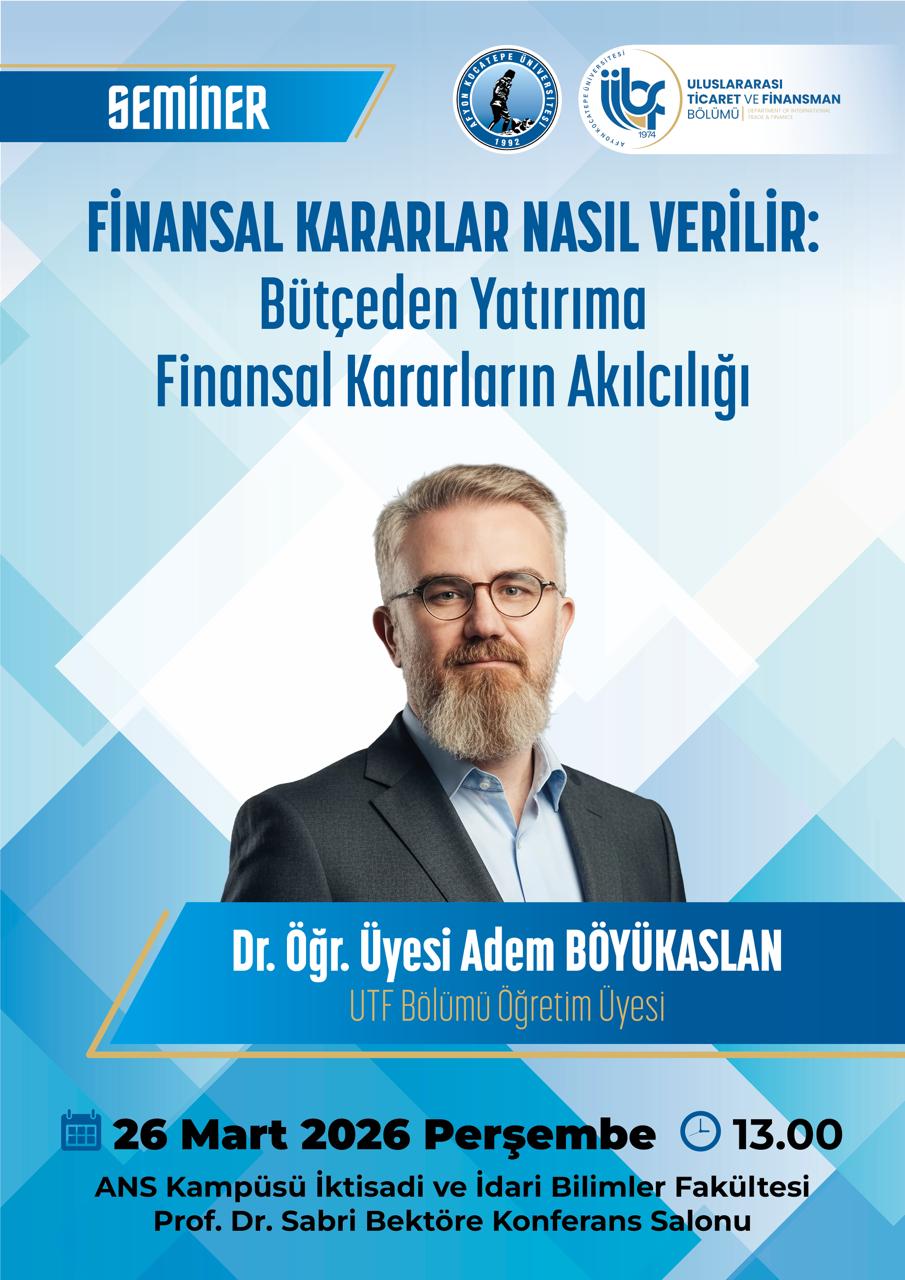 Finansal kararların nasıl alındığını, bütçeden yatırıma uzanan süreçte finansal kararların akılcılığını birlikte keşfetmek üzere tüm öğrencilerimiz ve ilgililer etkinliğimize davetlidir.
