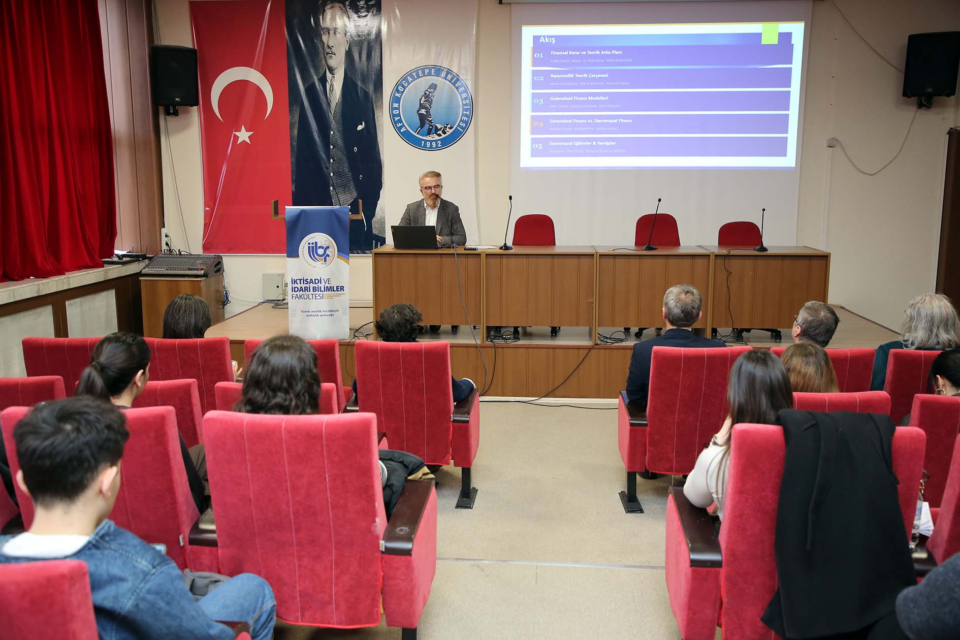 Afyon Kocatepe Üniversitesi (AKÜ), İktisadi ve İdari Bilimler Fakültesinde (İİBF) finansal karar süreçlerinin teorik temelleri ile bireylerin finansal davranışlarını etkileyen psikolojik faktörlerin ele alındığı “Finansal Kararlar ve Davranışsal Finans” semineri gerçekleştirildi.