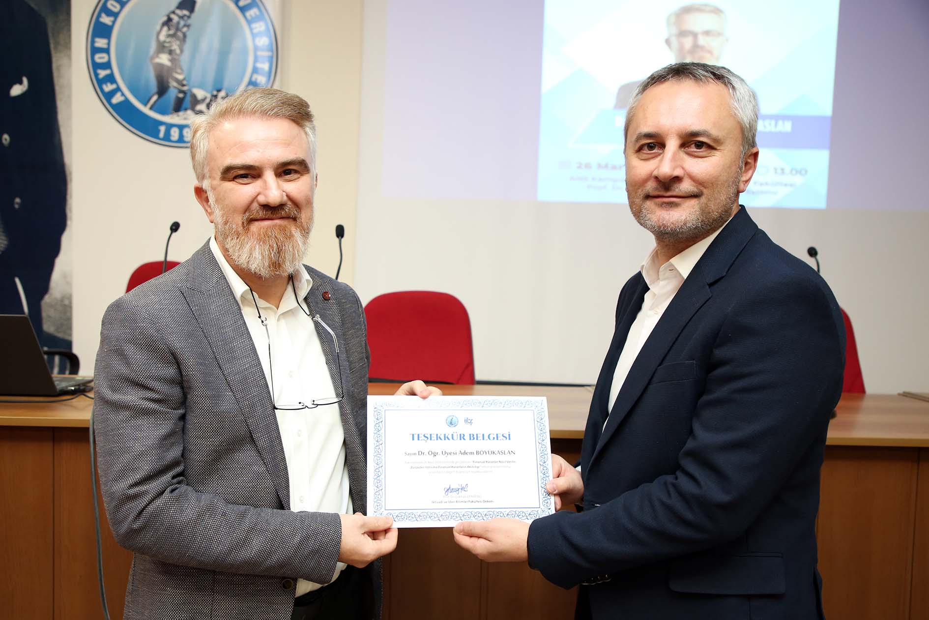 Seminer, katılımcıların sorularının yanıtlanmasının ardından İİBF Dekanı Prof. Dr. Gökhan Demirtaş’ın Dr. Öğretim Üyesi Adem Böyükaslan’a teşekkür belgesi takdimi ve hatıra fotoğrafı çekilmesinin ardından sona erdi.